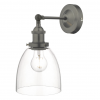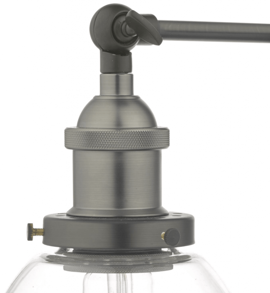 A minimalist design, the understated Arvin is a stylish, wall light that will work wonderfully by itself or in multiples in a room. Featuring an antique chrome finish with detailed metalwork and clear glass shades.