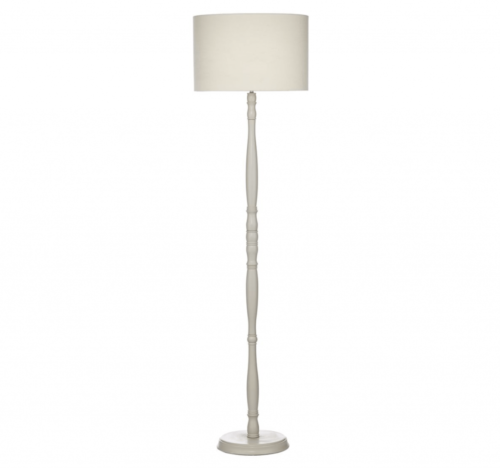 The Dunlop Floor Lamp has a traditionally styled putty finish base and cream linen shade.