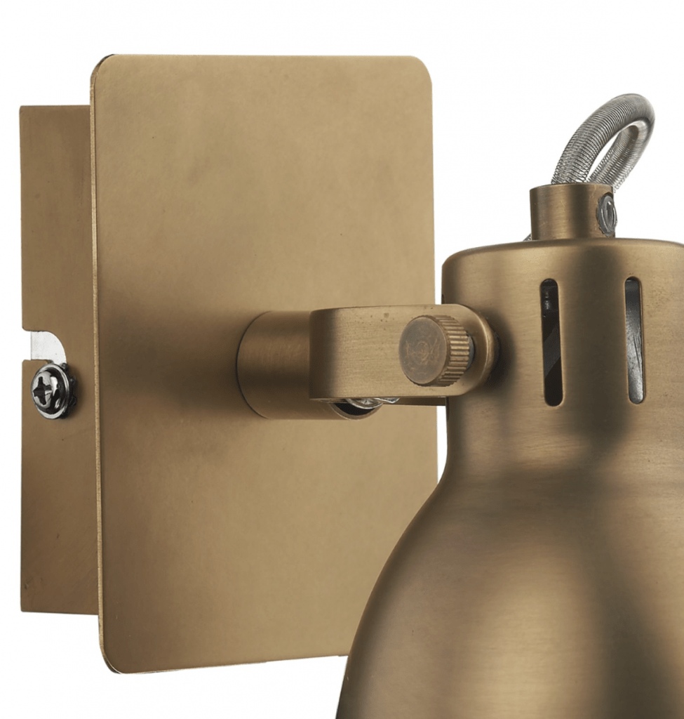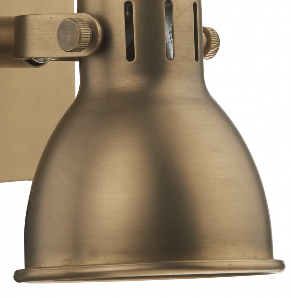 The IDAHO 1lt Wall Light features a natural brass ceiling plate and postionable spots.