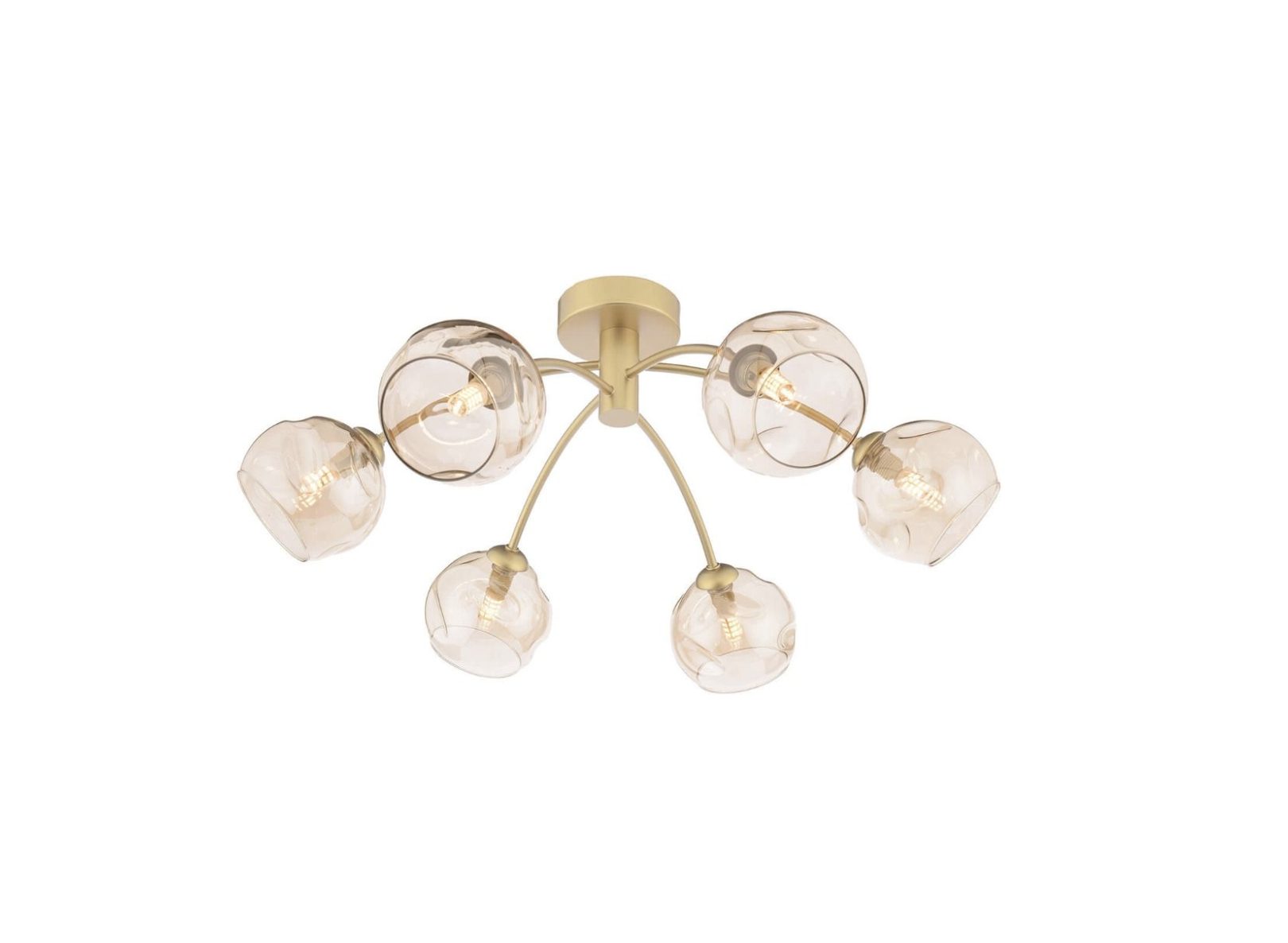 The Izzy 6 Light Semi-Flush combines timeless style with modern versatility, making it an adaptable choice across a variety of interiors. Paired with our Organic Amber Glass.
