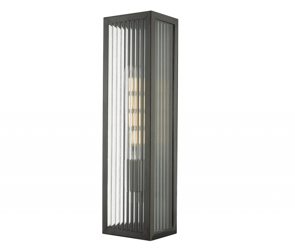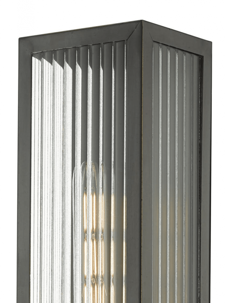 The Keegan wall light is an elegantly proportioned contemporary wall light fitted with ribbed glass that creates striking highlights when lit.