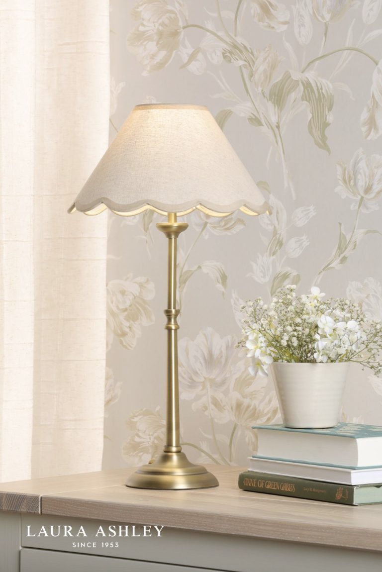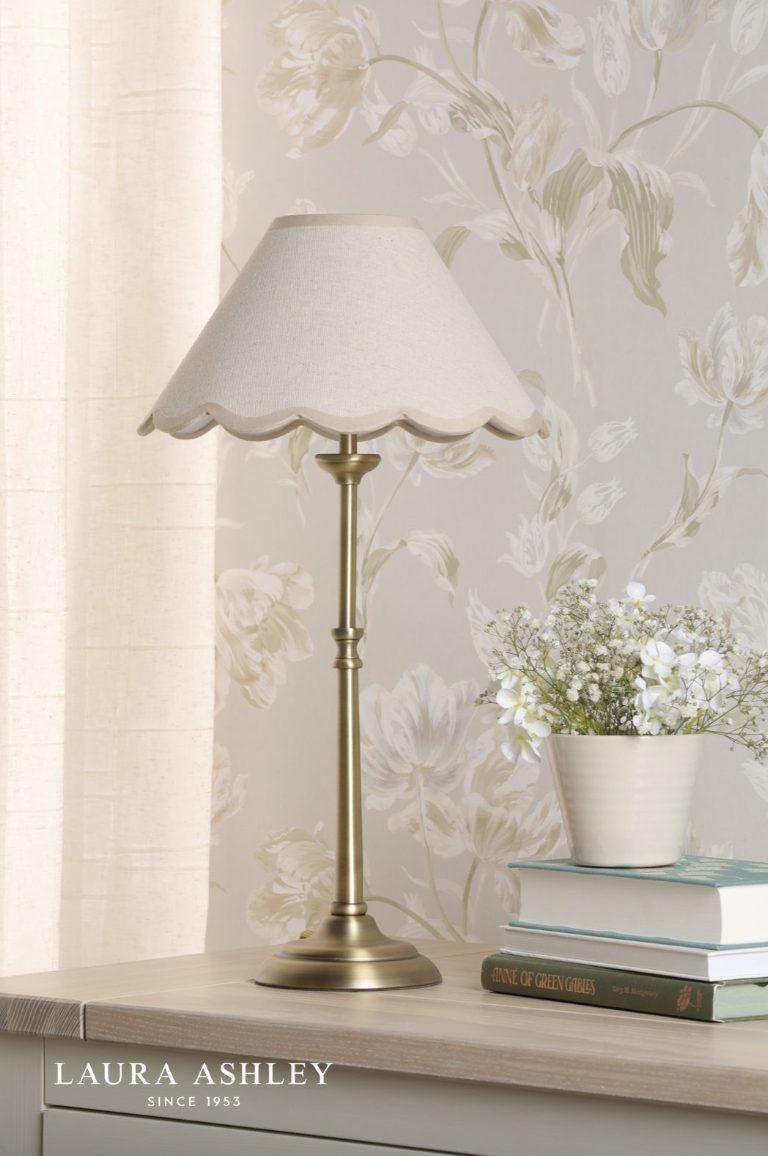 The Cordwell Scallop Table Lamp by Laura Ashley will create an on-trend statement in your home. This striking table lamp features a scalloped shade with a contrast trim. The Cordwell comes complete with a Natural Linen Coolie shade.