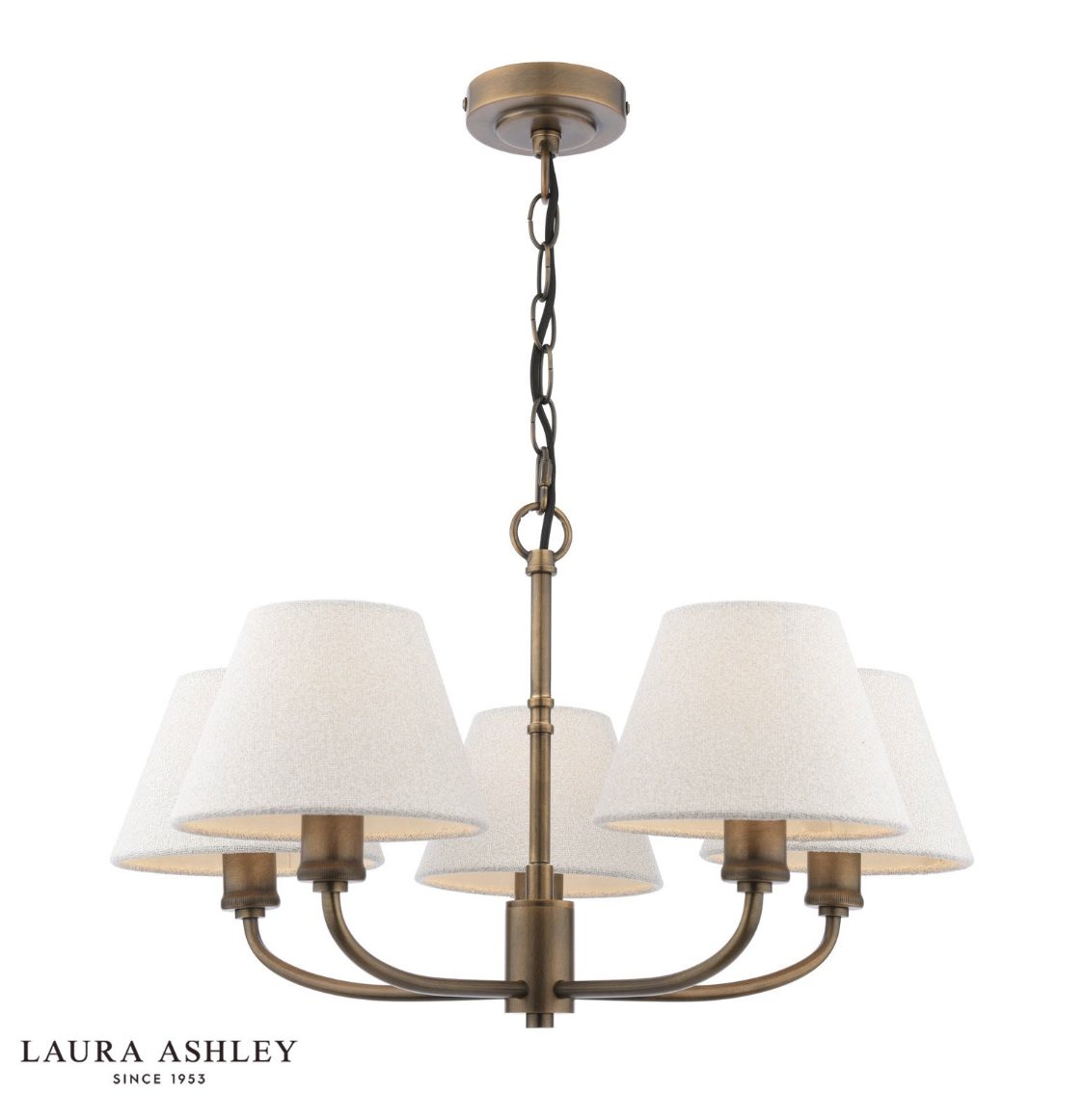 Elevate your living room or bedroom with the Laura Ashley Denston 5 Light Chandelier. This ceiling light adds layers of homely luxury with its textured boucle fabric shades in warm cream cotton. The antique bronze finish offers a traditional, timeless appeal, and with an adjustable height, you can customise this chandelier to suit any space. Lower it for a stylish statement over the dining table or raise it for a more subtle glow.
