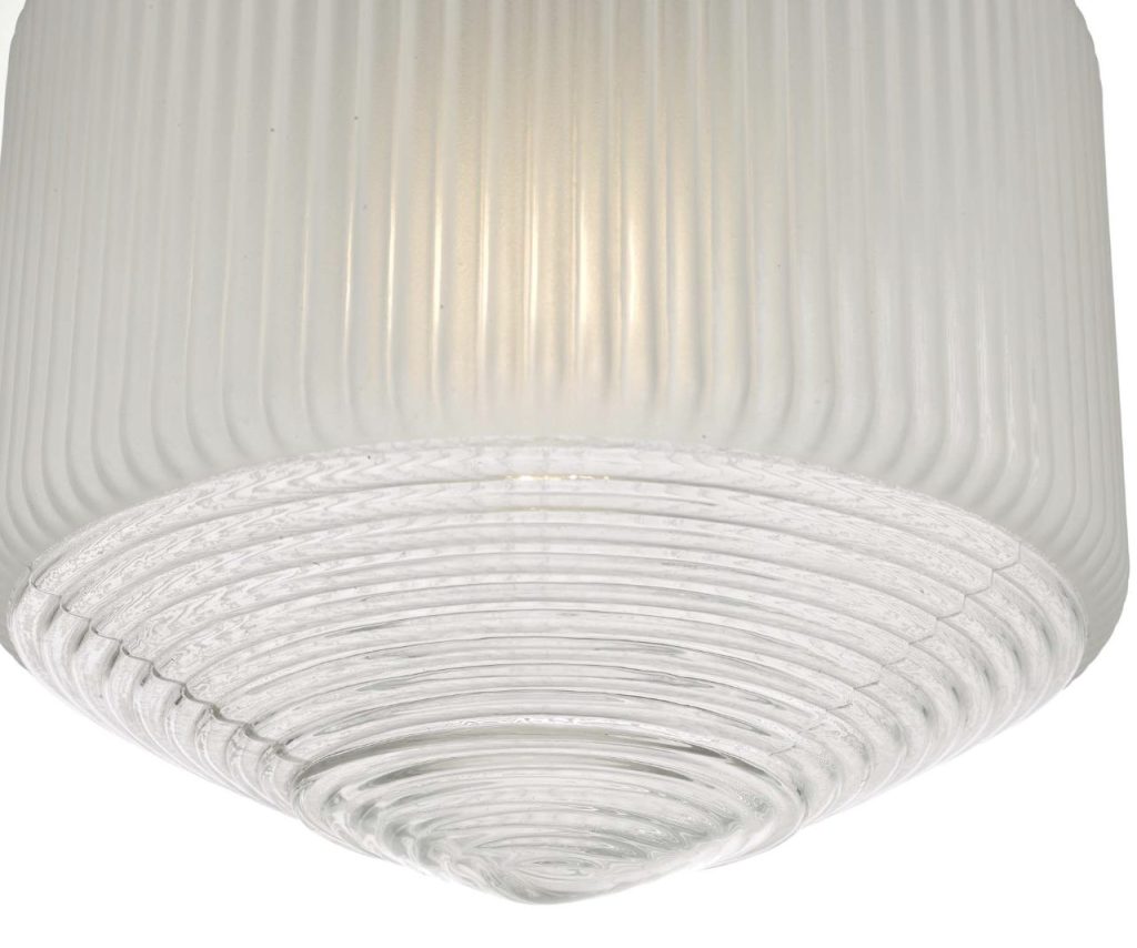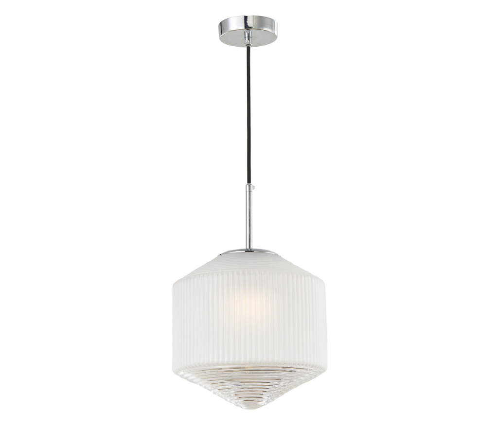 The Nisha 1 Light Pendant is a frosted and clear ribbed glass pendant in a classic art deco style finished in a polished chrome finish. A simple statement for any modern living space.