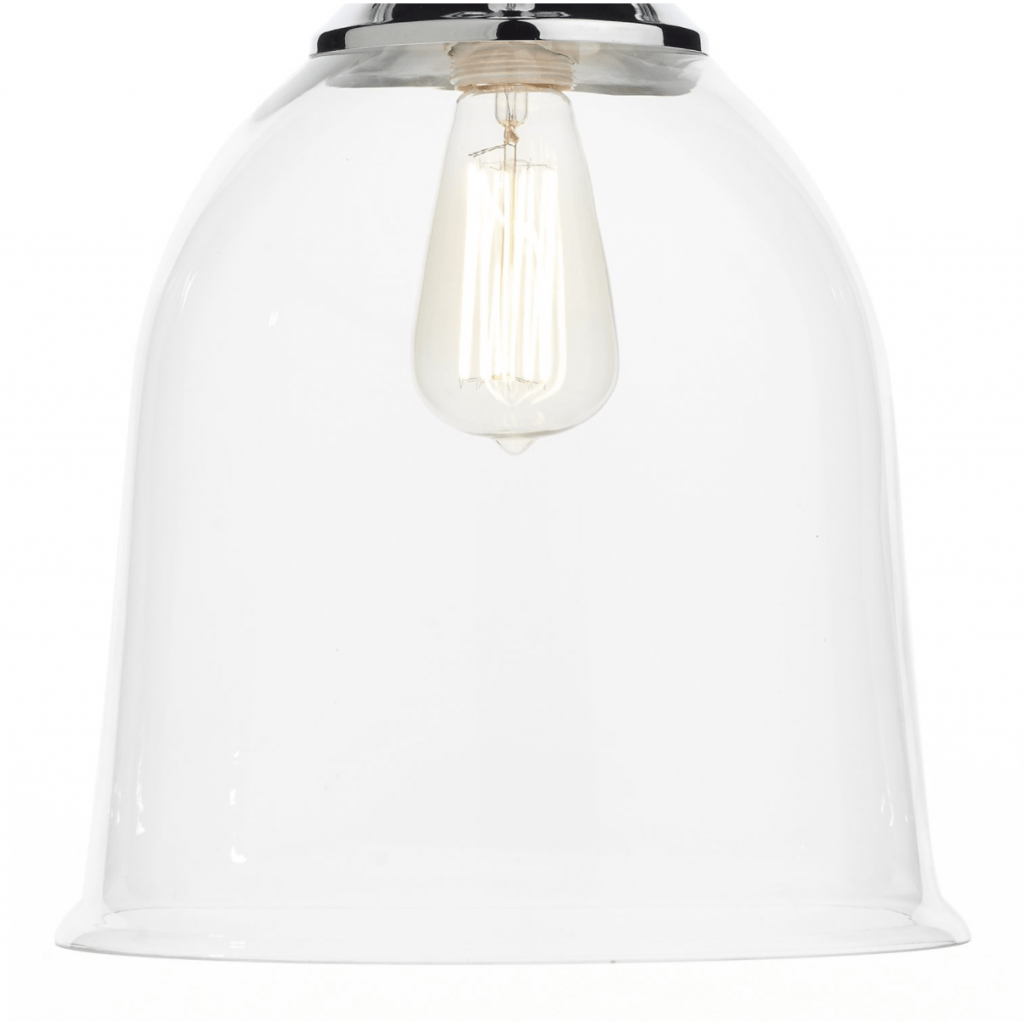 The NOLAN 1lt Pendant features a polished chrome frame and a clear glass shade.