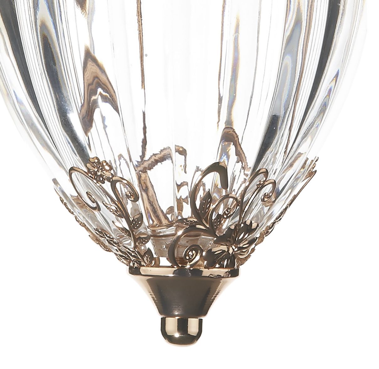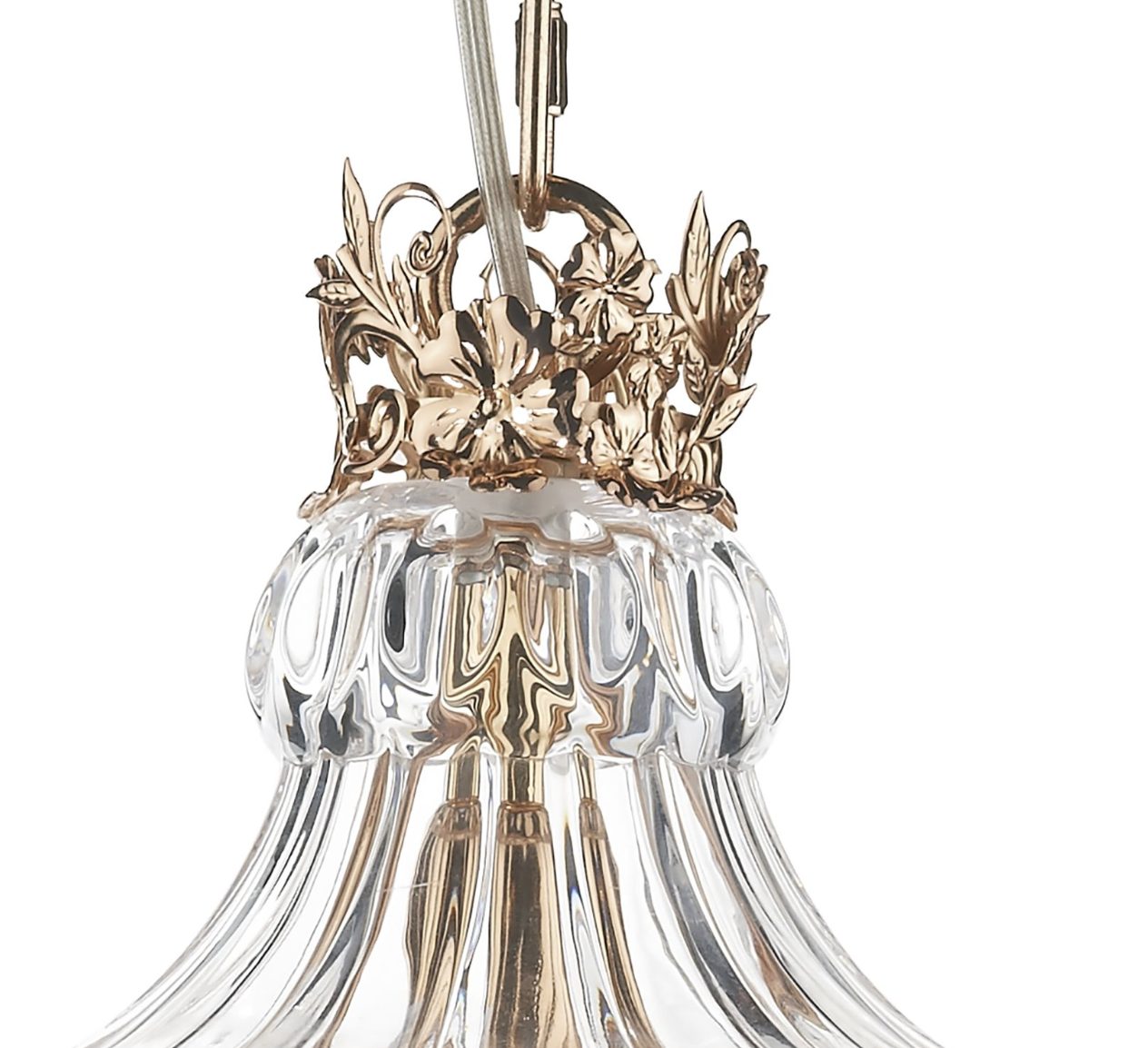 The OTTOMAN 1lt Pendant has decorative French gold finish filigree metal work on a beautifully-shaped fluted glass pendant.