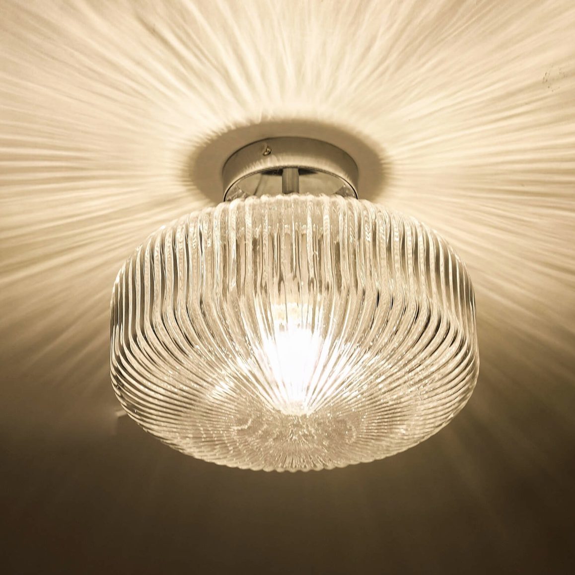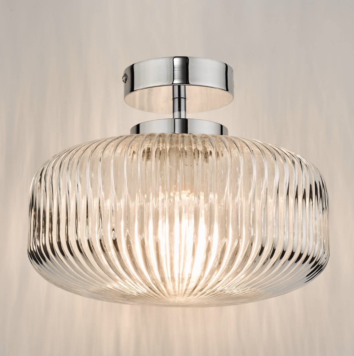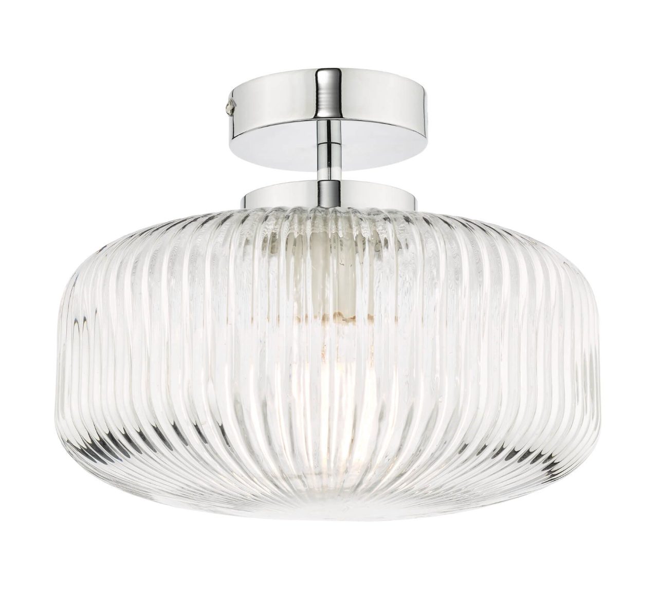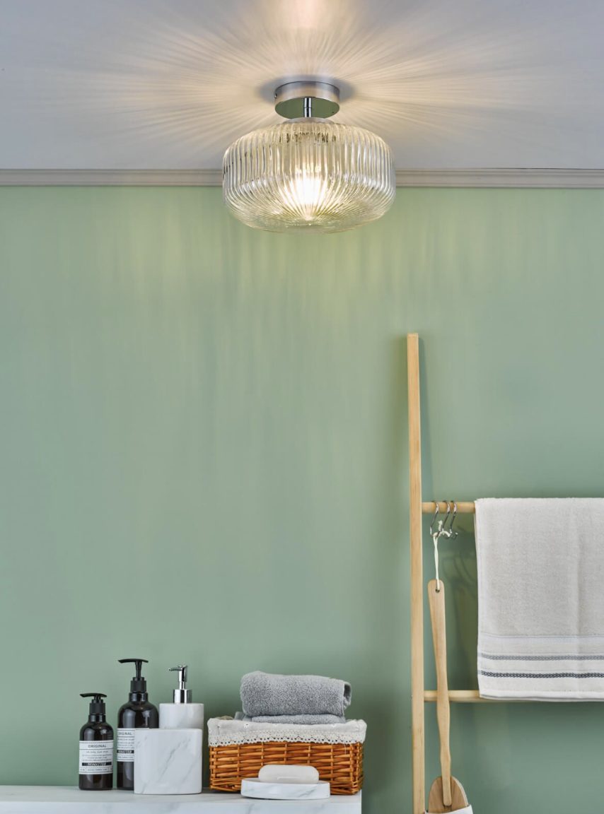 The Riva bathroom ceiling light consists of a brilliant ribbed glass shade and polished chrome metal work. The light gives a radiant effect through the glass and looks great during the daytime. Constructed and tested to IP44 standards the Riva bathroom ceiling light can be safely used in bathrooms zone 1 & 2.