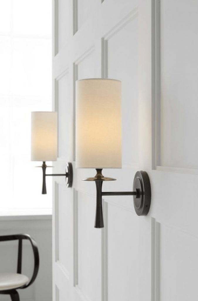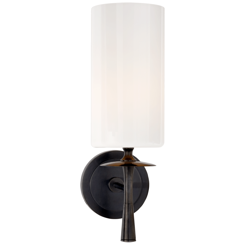 Drunmore Single Sconce in hand-rubbed antique brass, bronze or polished nickel finishes. Shade options available.