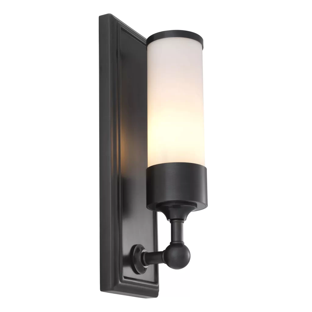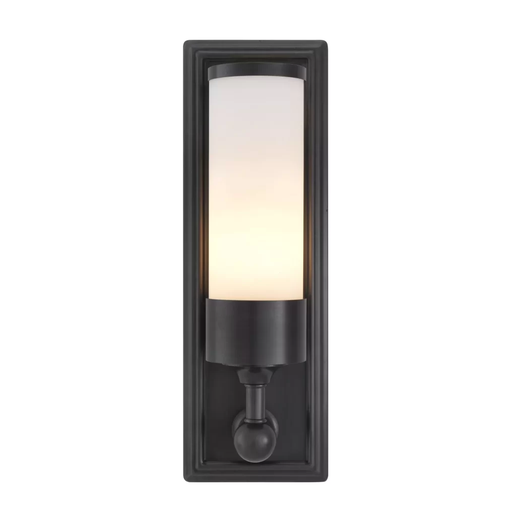 Inspired by antique sconces, the beautiful bronze finished Valentine Wall Lamp brings a soft and warm glow to your home. Featuring a rectangular backplate with a clean-lined arm and a rounded pedestal with a frosted glass cylindrical shade, it’s a great addition to any aesthetic.