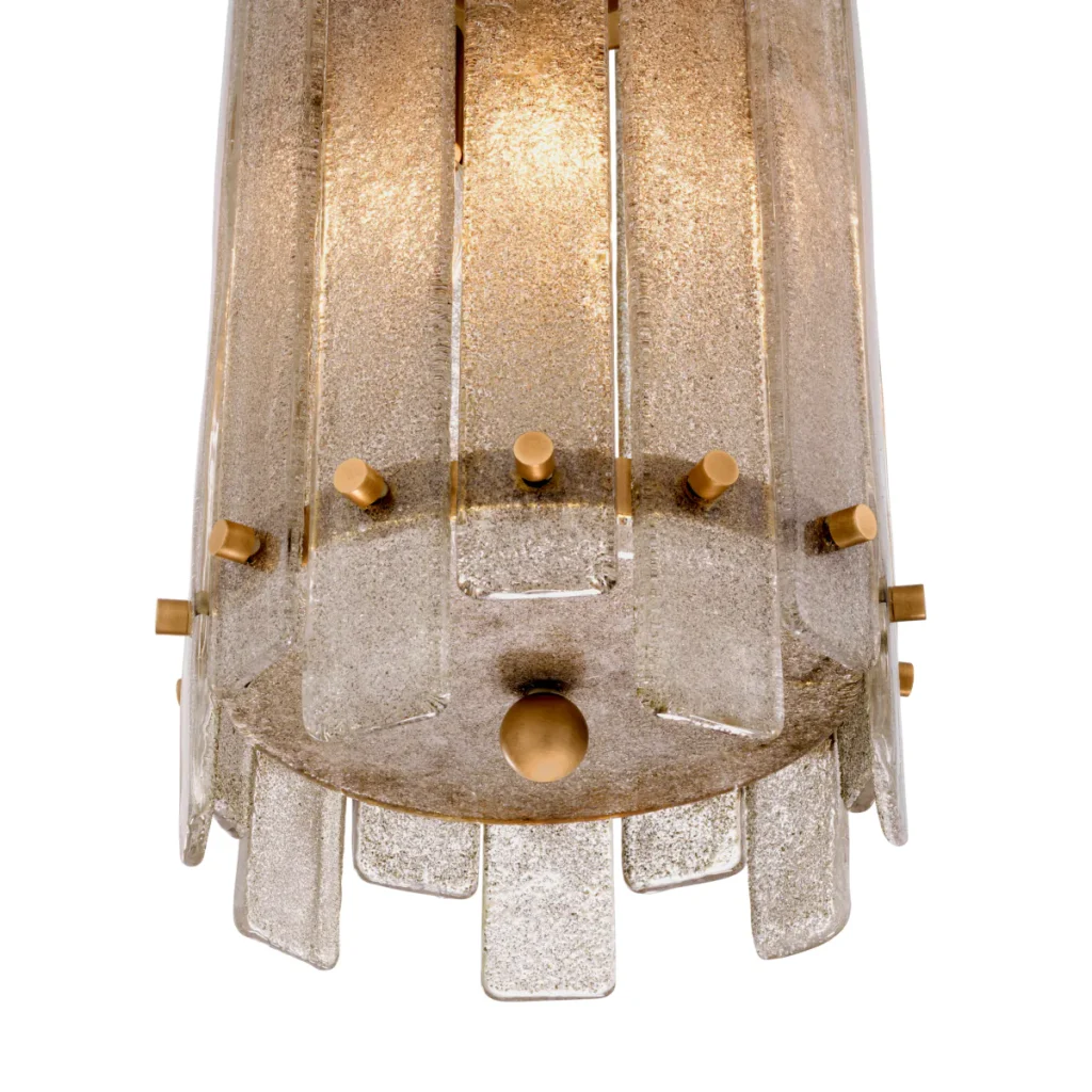This cylinder pendant lamp with gold finish sheds a wonderful light over your dining table or kitchen island. Its lampshade is comprised of rods of hand blown for an upscale retro look.