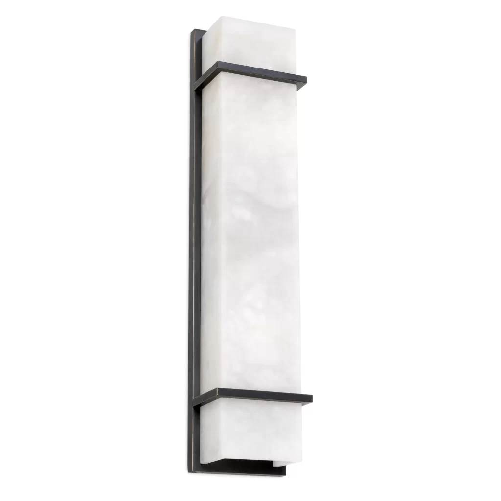 The Spike Wall Lamp has more than a hint of Bauhaus styling. Combining a sleek bronze highlight finish frame with a translucent shade of alabaster, it creates a pleasant, relaxed lighting effect.
