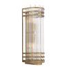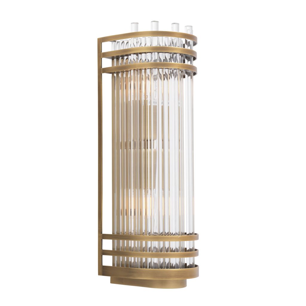 Wall Lamp Gulf S has more than a hint of Art Deco styling with its tubular design. Featuring a mix of vertical and horizontal lines, this elegant wall lamp will sit well in chic boutique style hotels and will easily fit into both modern and traditional home interiors. The metalwork has an antique brass highlight finish and the shades are formed by clear glass rods.