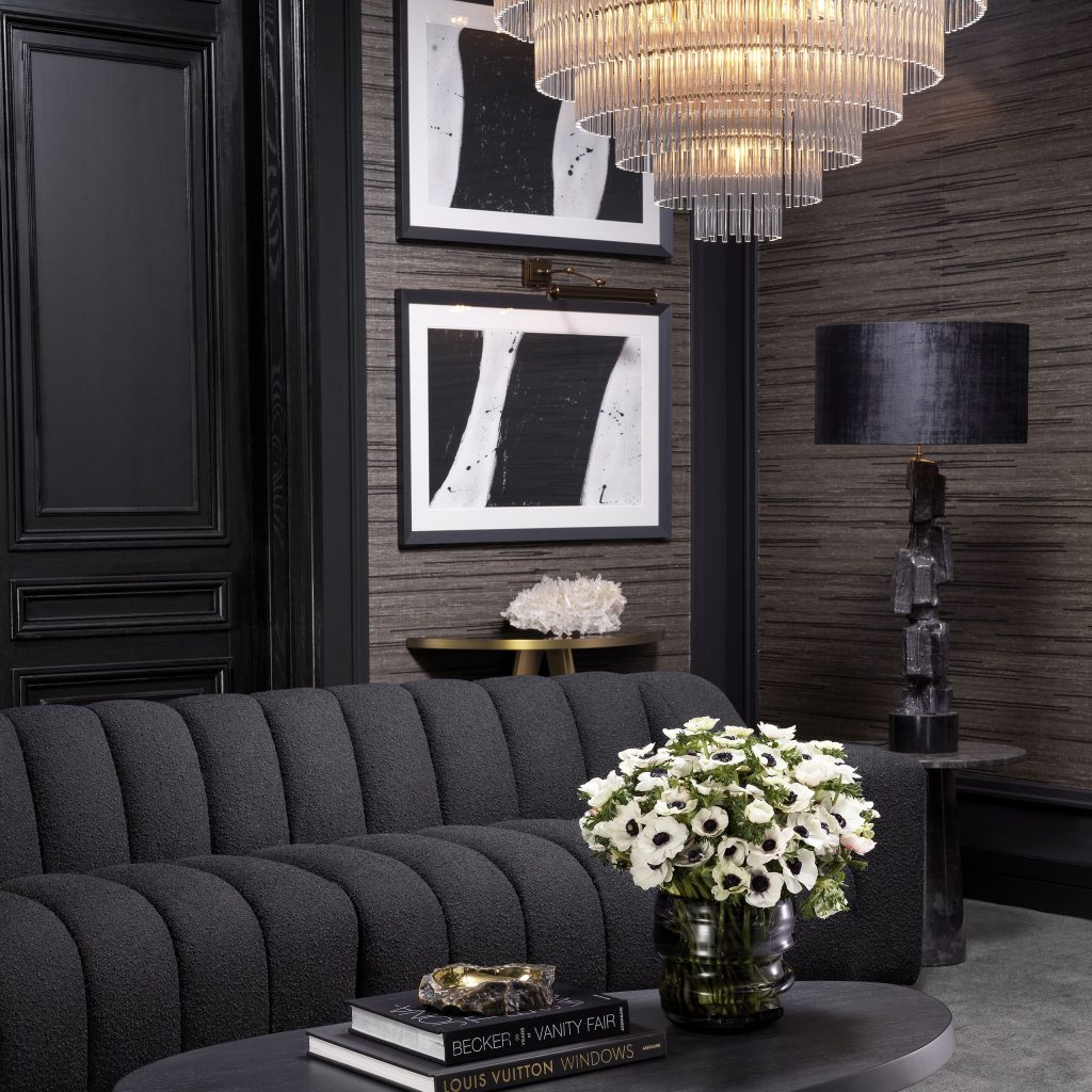 Chandelier East has more than a hint of Art Deco decadence. This stunning vintage replica chandelier with antique brass finish exudes the vibrant atmosphere of the roaring 1920s. Several tapered levels of 429 pcs clear glass rods emanate a captivating illumination. Ideally suited to modern interiors and 1920s and 1930s décors.
