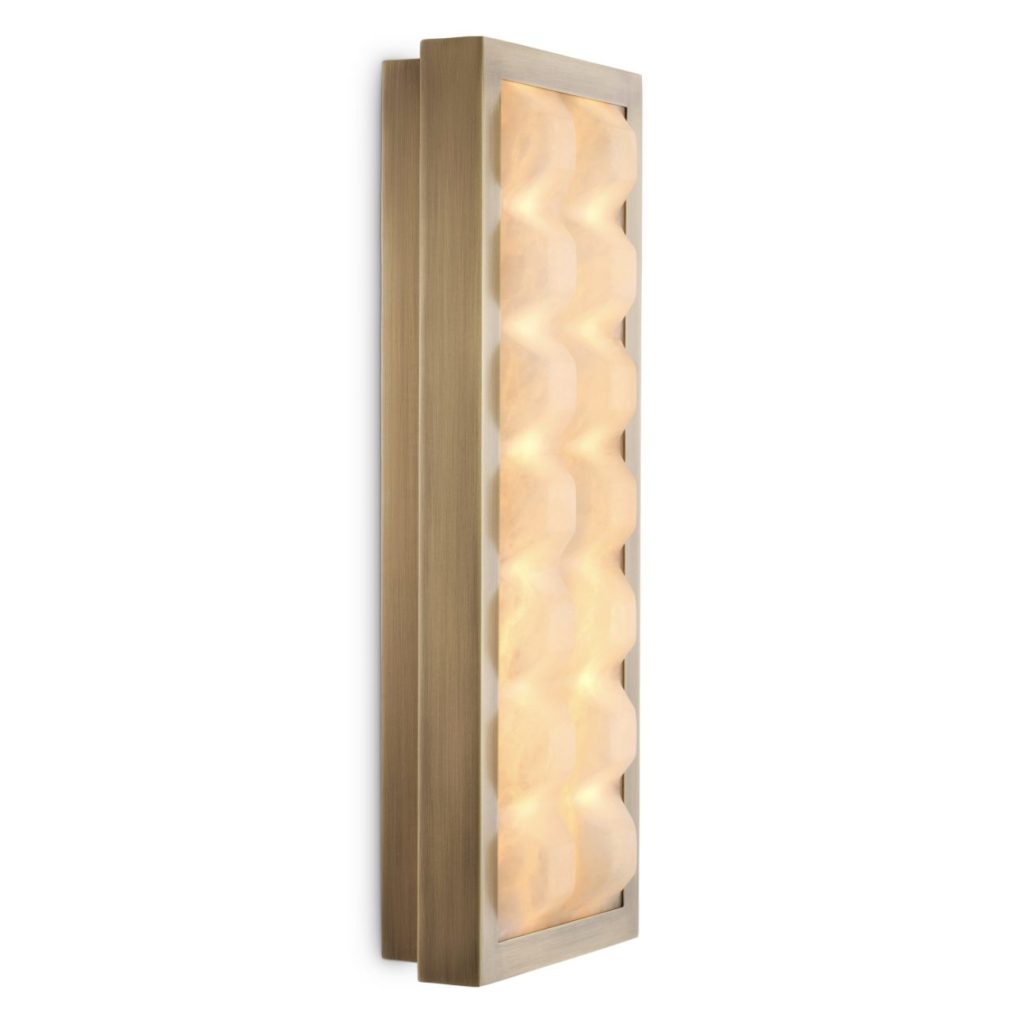 This exquisite piece features a lustrous antique brass frame, delicately housing radiant alabaster panels. Discover the transformative glow of this elegant lighting fixture, perfect for any sophisticated space.
