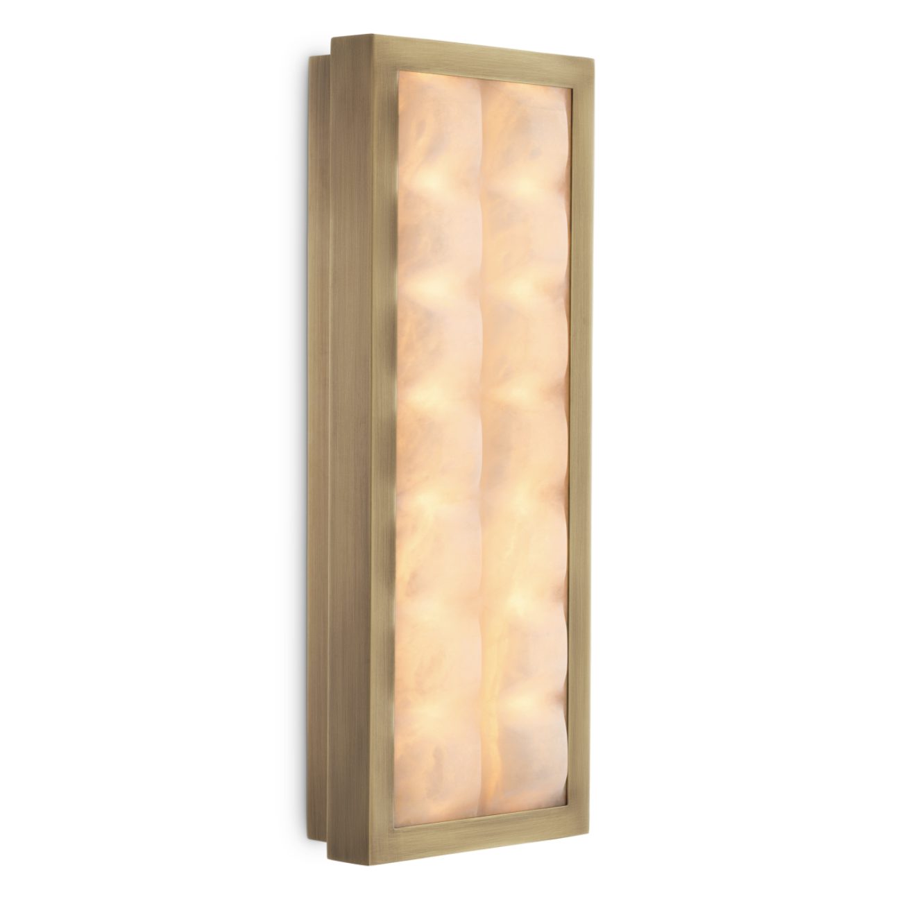 This exquisite piece features a lustrous antique brass frame, delicately housing radiant alabaster panels. Discover the transformative glow of this elegant lighting fixture, perfect for any sophisticated space.