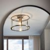 Simple yet stunning flush light in antique brass plate and clear glass. Dimmable to create the perfect ambience making the perfect addition to hallway or low ceiling room.
