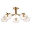 Blending classic curves with modern simplicity, this 5-light semi-flush ceiling fitting features softly rounded arms in a warm brass finish and hand-blown clear bubbled glass shades. Each globe subtly distorts and enhances the light, creating a gentle sparkle that adds atmosphere to any room.