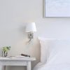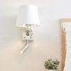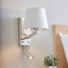 The Harvey wall and reading light is finished in bright nickel plate complemented by a vintage white, faux silk shade, with a silver lined, vintage white, faux silk shade. Featuring an additional, adjustable LED reading light, for the perfect sophisticated boutique hotel look.
