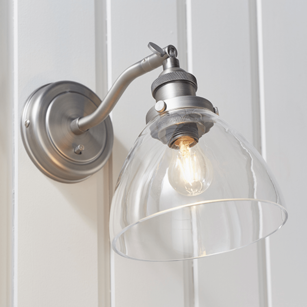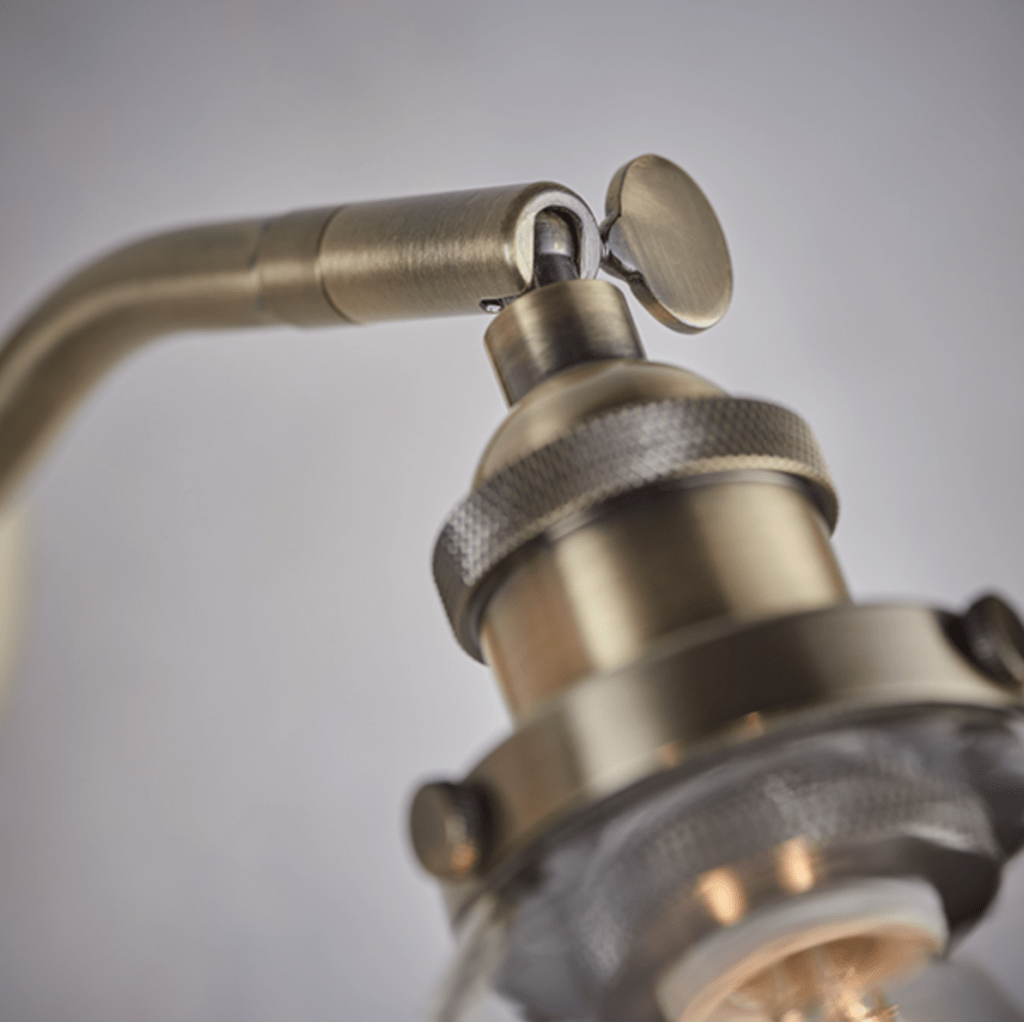 An authentic ‘resto’ style adjustable wall light, finished in antique brass or brushed silver plating with authentic knurled lamp holder details and clear glass shades. Featuring an adjustable knuckle and accessible on/off switch, pair this wall light with filament LED lamps for that perfect industrial style. The perfect addition for today’s stylish homes to create that on trend bar, bistro look.
