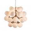 A timeless and modern design with a ‘mid-century’ feel, this impressive pendant light is at home in modern or classic interiors. Finished in smart satin nickel plating with gloss white glass shades and suspended from height adjustable thin wire cable with clear flex.