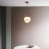 Matt antique brass single pendant with opal glass and adjustable stem.