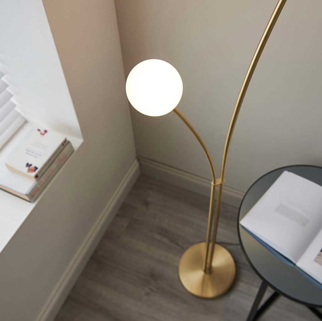 Stunningly simple but striking design contrasting satin brushed gold with gloss white glass – easily placed as a finishing touch to complete a modern aesthetic. Completed with in-line foot switch and light grey fabric flex.