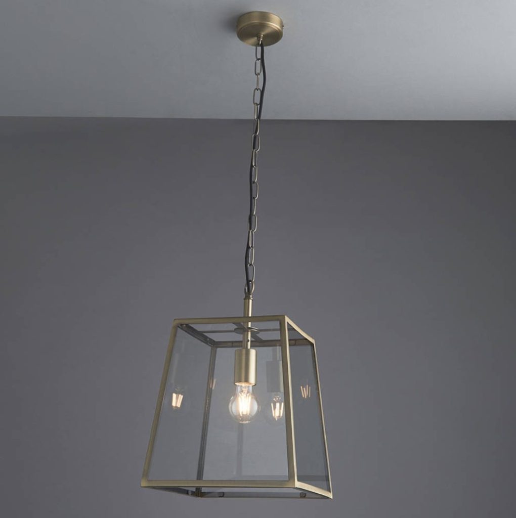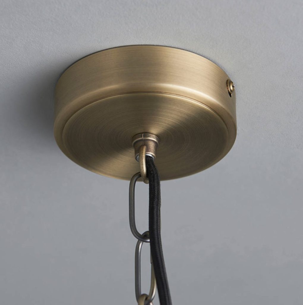 Inspired by box lanterns, the Hurst ceiling pendant is the perfect complement for today’s relaxed classic interiors. Finished in matt antique brass and suspended from height adjustable chain with black fabric flex.