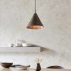 Modernise your interiors with this brushed antique brass or bronze pendant, metalwork and inner shade. Ideal for over a dining table or kitchen island, this minimal design is a great fit for both modern and traditional homes. The 1.2 metre black fabric cable gives you the flexibility to place this pendant in the perfect spot.