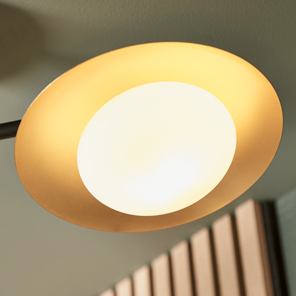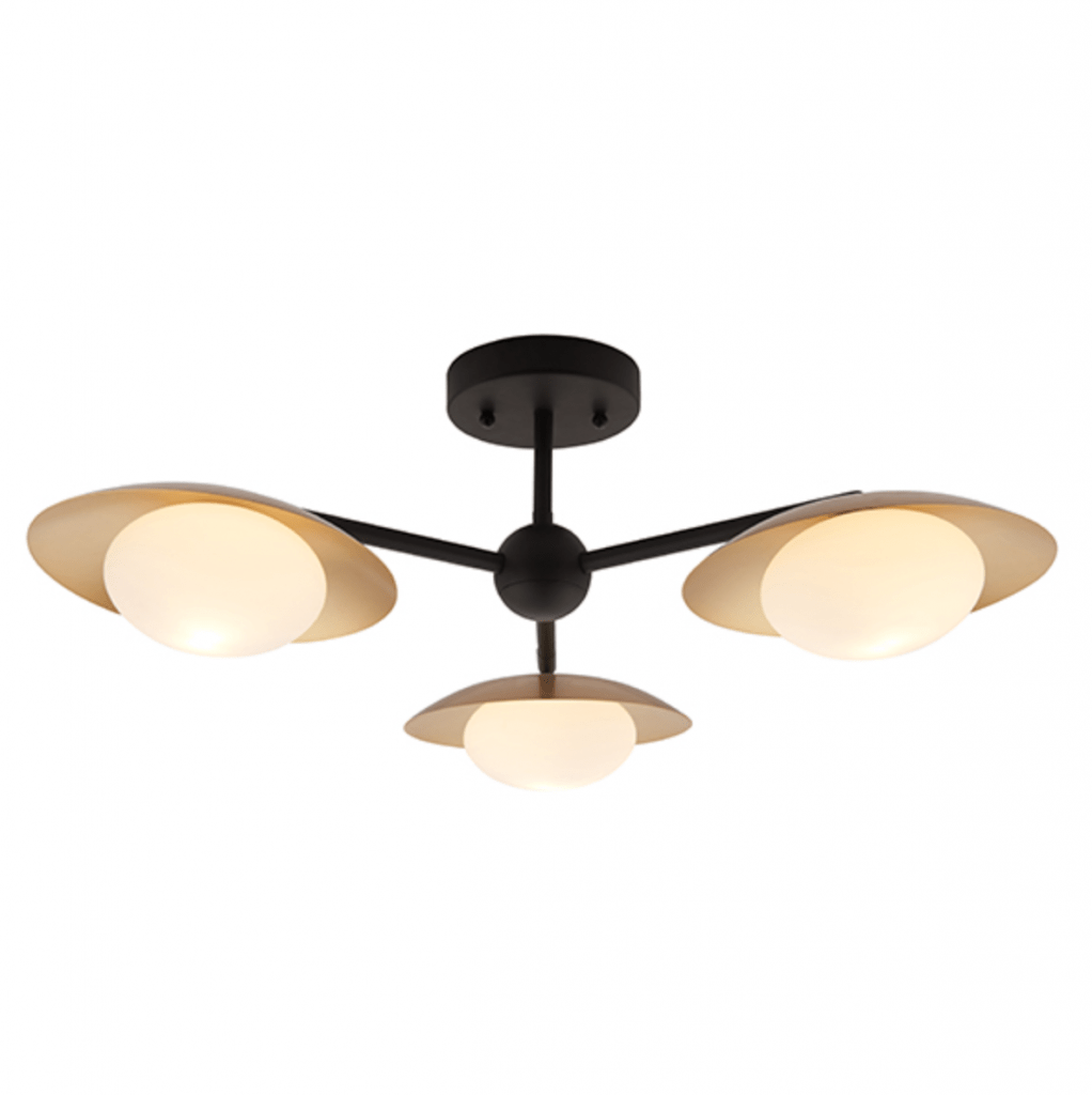 Gold & bronze dish semi-flush with pebble shaped glass.