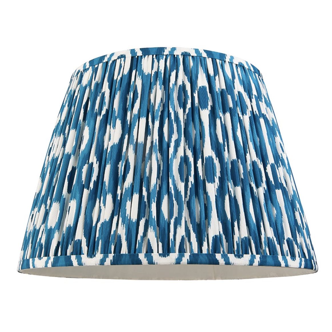 40cm tapered shade with reversible white gimbal. Unique Ikat pattern design with taped edge detailing and plain inner lining.