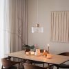 The inspiration for the DOT lamp series designer Roger found in a glass bottle decorated with a lid with a larger knob. The lamp’s knob in wood creates a beautiful contrast to the glass bowl. The lamp is made of clear glass and has a knob in light wood. DOT has a 120 cm long white textile cable and ceiling cup in white plastic.