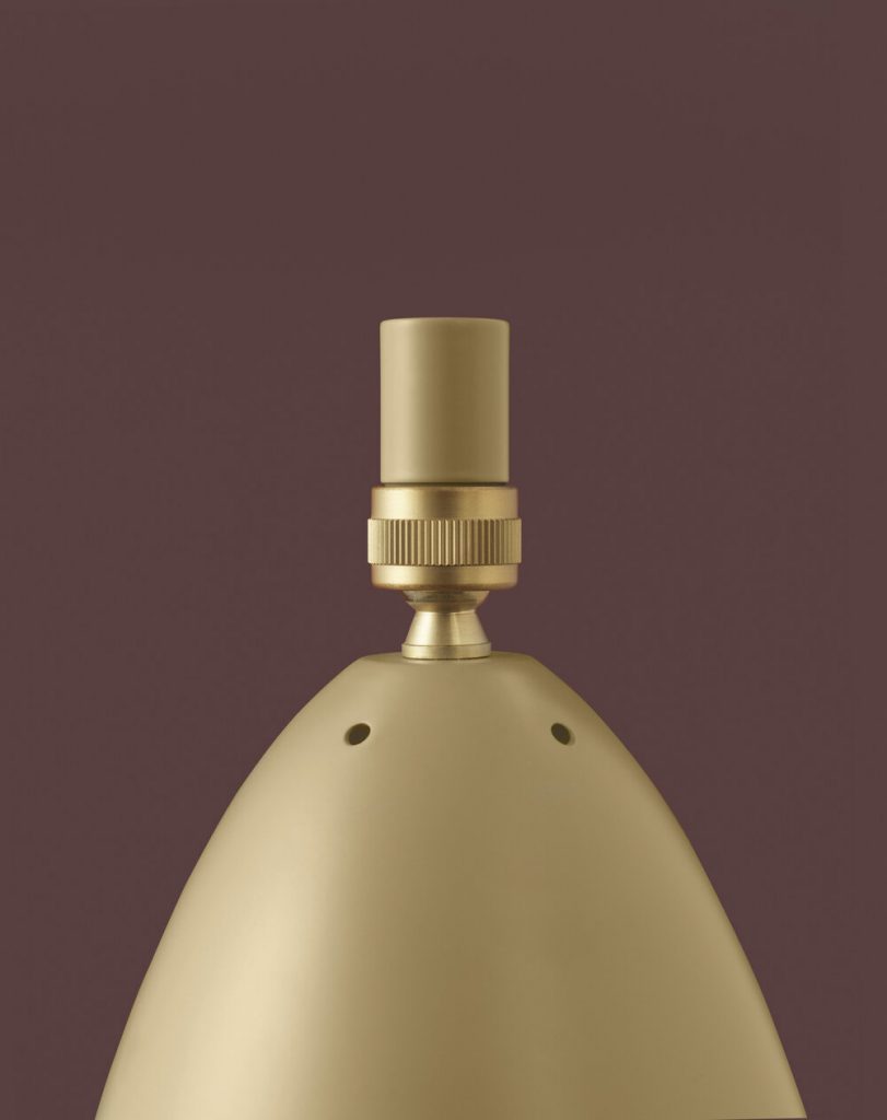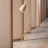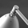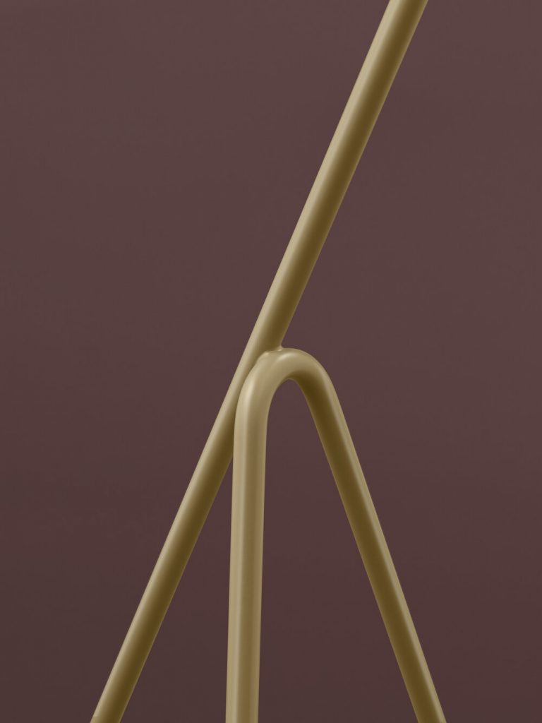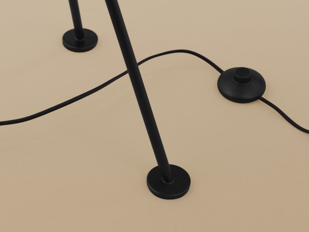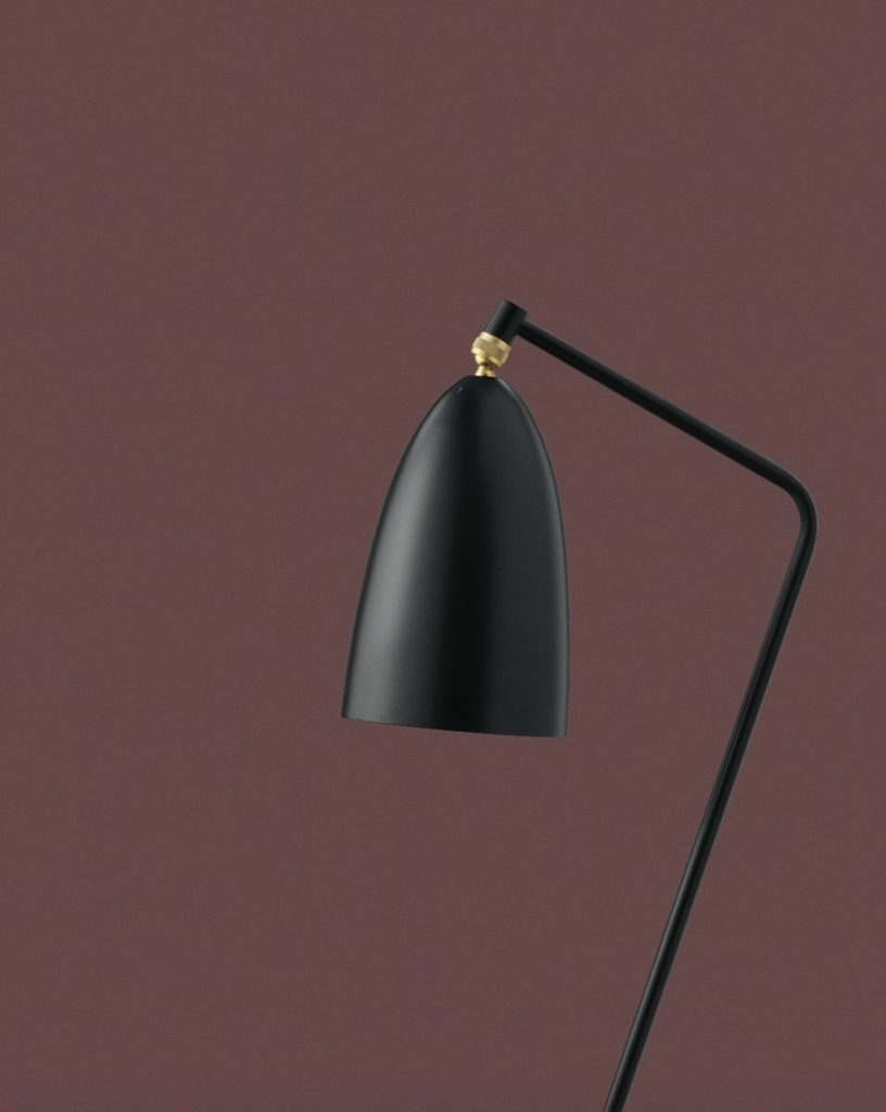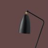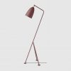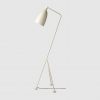 Gräshoppa floor lamp – the tubular steel tripod stand is tilted backward and the elongated aluminium conical shade is ball-jointed onto the arm. Both stand and shade are powder-coated and available in a variety of finishes.