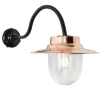 This unique wall light is a new take on a classic look which has taken inspiration from the vernacular design of an old farmyard light. The downturned copper head encourages the lighting spread towards the ground and can light a wide area around a doorway or walkway.