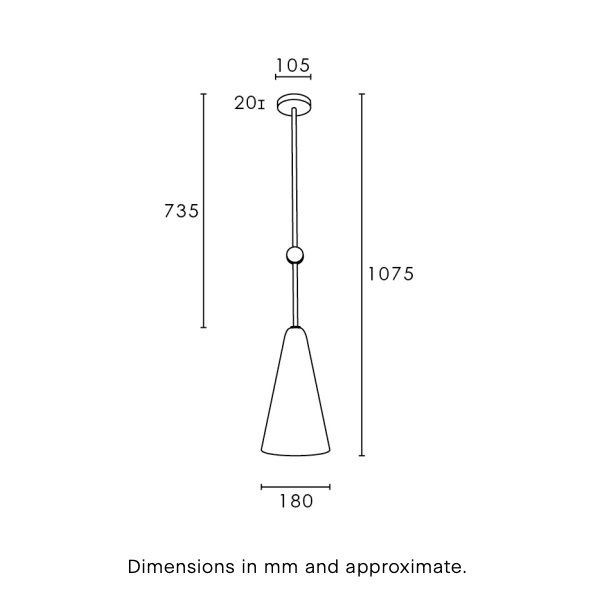 Ines is simple and sleek in design. Featuring a refined conical glass shade and Satin Brass metalwork, this pendant’s versatile design will complement a variety of interiors, from classic to contemporary. The Ivory glass emits a beautiful warm, ambient glow.