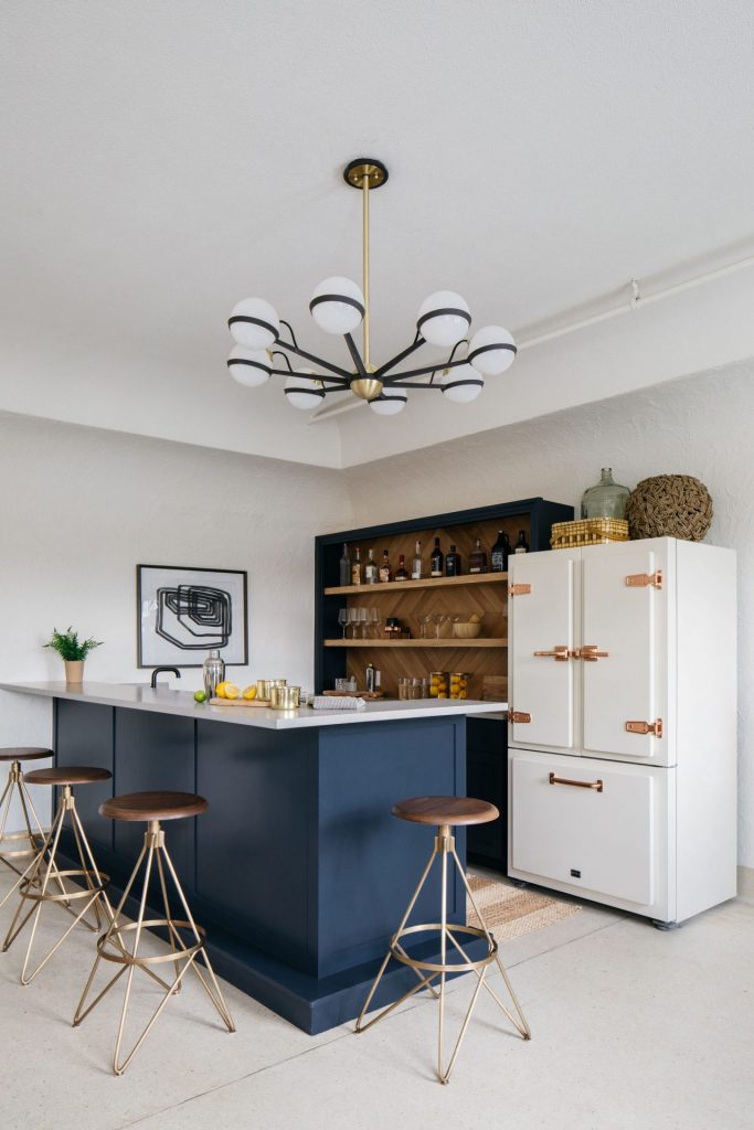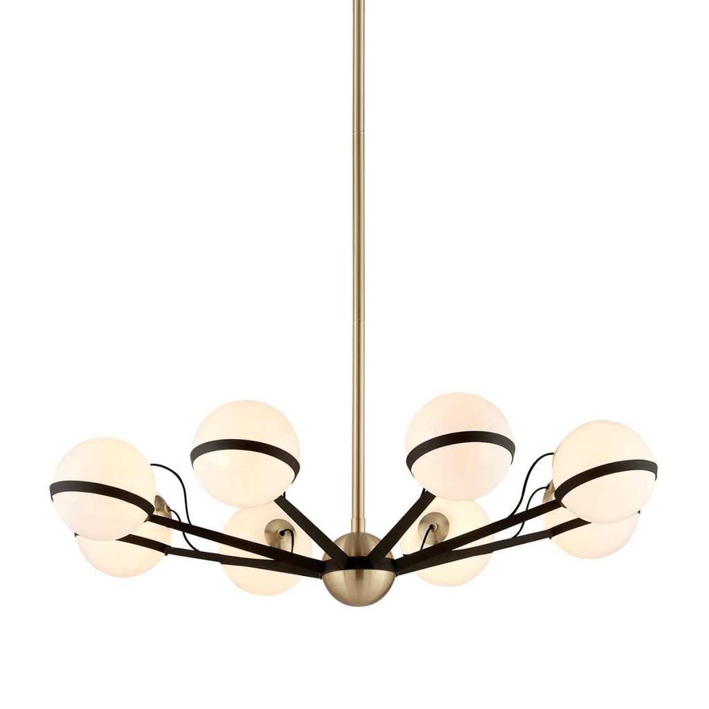 A new spin on atomic age allure, Ace’s strong elements are accented by diagonal and off-centre lines. Glossy orb diffusers evenly distribute the light. One of the cool details that makes it such a standout piece are the small woven cords running from the arms to the back of the diffusers, where a curved piece of Brushed Brass matches the sphere and rod at Ace’s core.