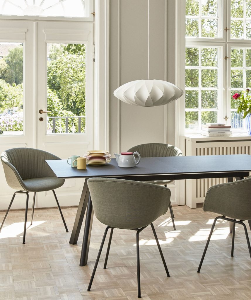 Designed by George Nelson in 1947, the Nelson Bubble Pendant Lamp series comprises a range of pendant lighting solutions with varying spherical silhouettes. Inspired by a set of silk-covered Swedish hanging lamps, the lamps’ organic shapes appear to delicately float overhead, offering a soft and atmospheric light.