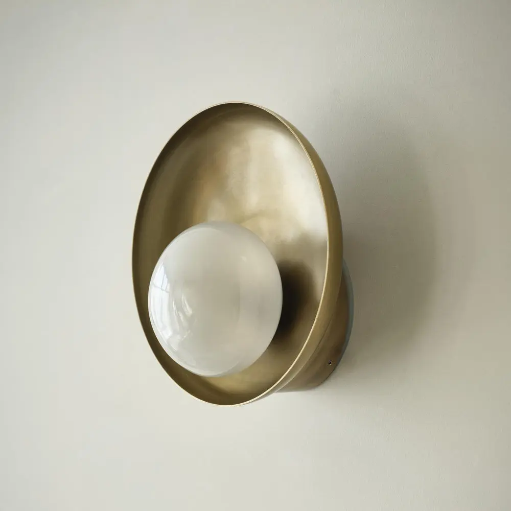 Aligning softness and contrast perfectly. The curved metal backplate gently cradles the frosted glass diffuser, creating a glow that feels both sculptural and serene. Ideal for hallways, living rooms, or beside the bed—anywhere you want lighting that feels intentional and quietly impactful.
