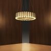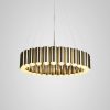 Inspired by the merry-go-round ride of a traditional British fairground, Carousel is a pendant light with a heavyweight presence that floats gently in space. Cylinders of gold, chrome, gunmetal or black each house an inset LED lighting element resulting in a spectacular yet playful ring of light. Carousel is suspended from a matching finish circular ceiling plate by steel suspension wires with a single clear cable.