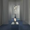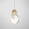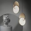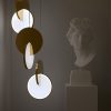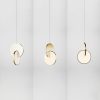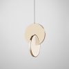 Eclipse Pendant is celestial in both its name and inspiration. Mirror-polished gold or chrome and acrylic discs interact, dissect and obscure, which both eclipses and reveals its illumination to the viewer at the same time.