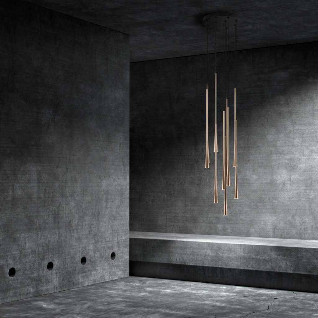 DROP is a slim and elegant ceiling pendant, a name that is derived from the shape of falling drops. Group a cluster of DROP pendants to create a striking chandelier for an aesthetic decor.