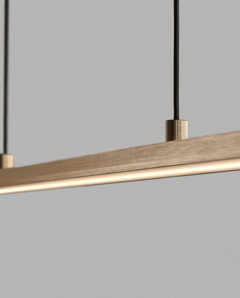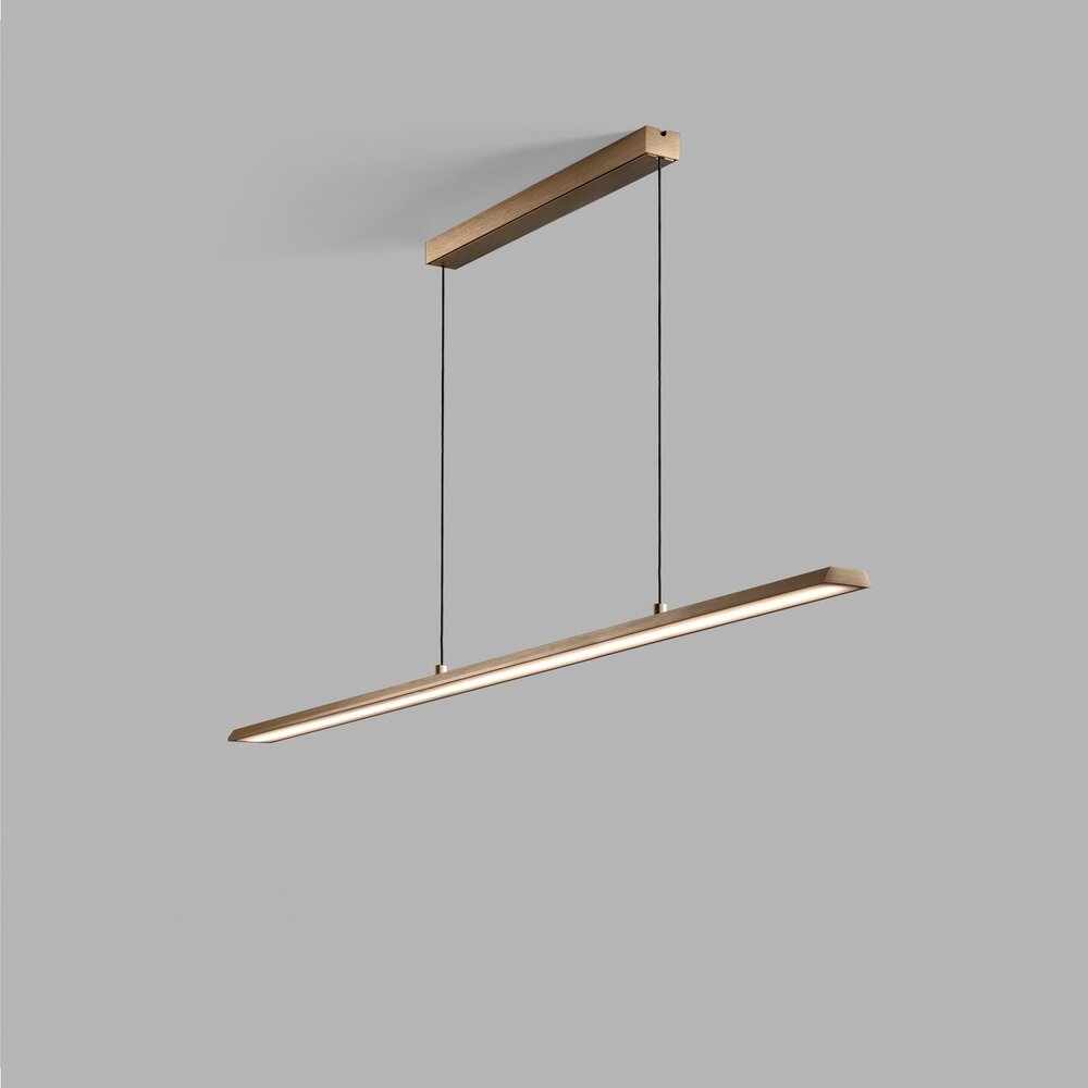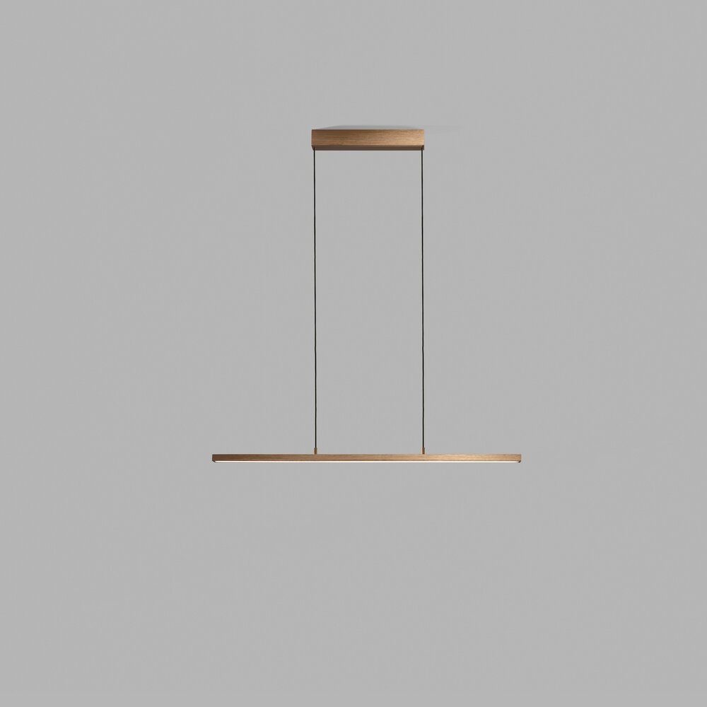 SLIM brings to mind a trapeze suspended above the table, held up by two, thin fabric cables. The luminaire, is just 1 cm thick and 5 cm wide. It is available in three lengths. 120cm, 150cm and an impressive 180cm.