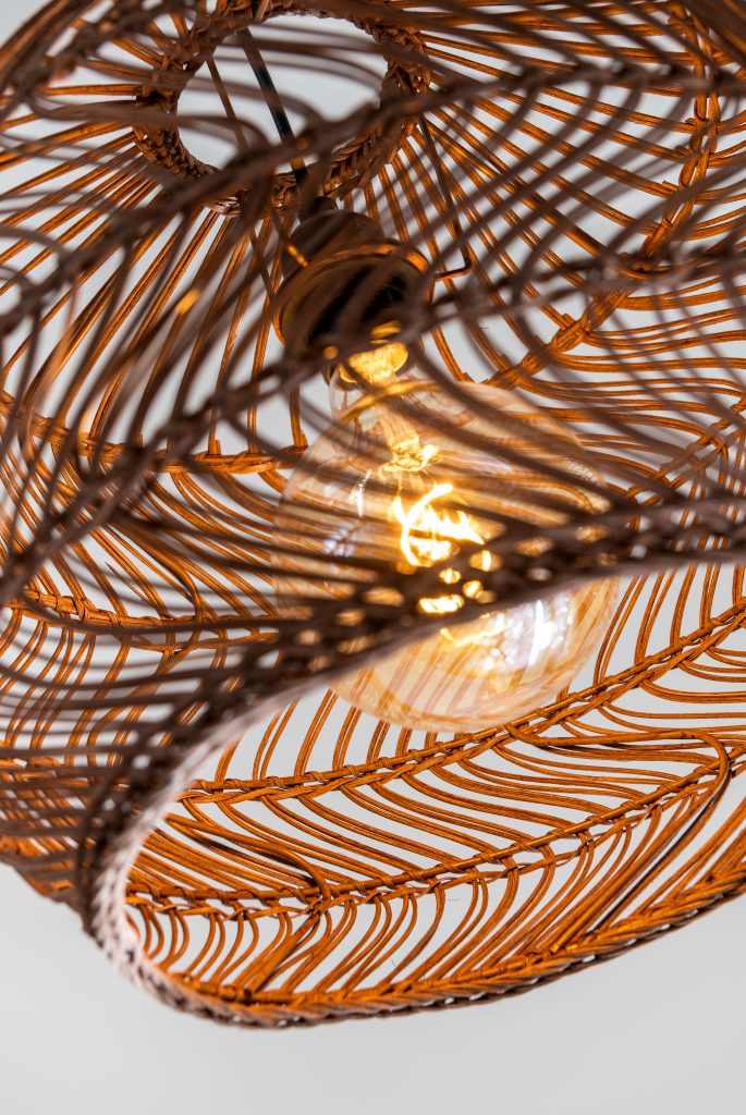 Moloko is at home with every mood. This hanging lamp with a diameter of 40 centimetres is made of high-quality rattan. The natural look of this chandelier enhances a tropical interior or offers an oasis of peace in a sleek Scandinavian setting.
