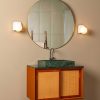This wall light features a subtle metal holder that supports a glowing glass sphere. It is perfect for use in the bathroom, bringing tranquillity and a soothing ambience.