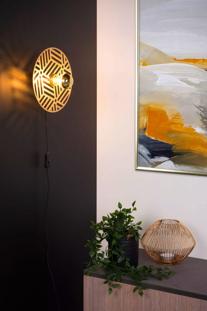Olenna brings twice the fun to your interior. On the one hand, you will enjoy the fascinating play of lines that the circular plate behind the bulb offers. On the other hand, that pattern casts a dynamic shadow play on the wall.