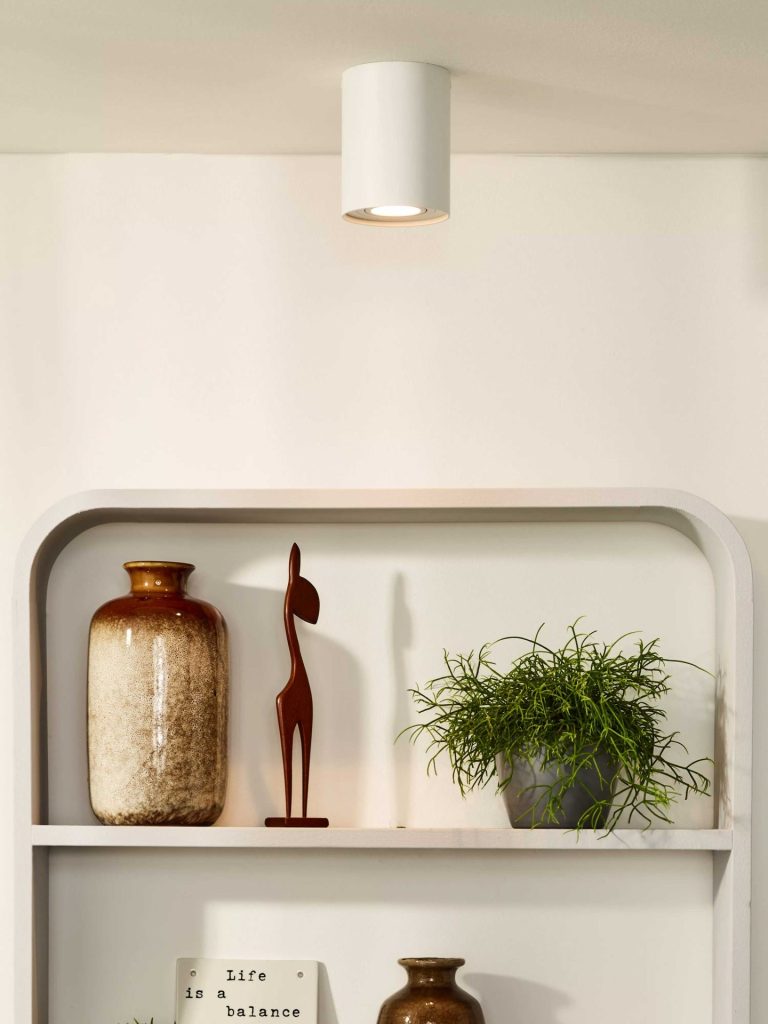 The mounted spot Tube round from Lucide is an armature lamp made completely of aluminium, and it therefore has a very high-quality appearance. With a diameter of 9.6cm, it is easy to place on a central box.