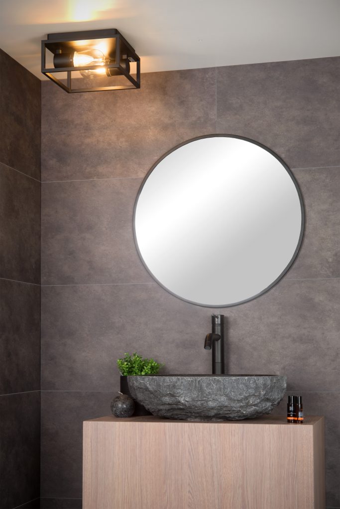 The correct lighting is crucial for a bathroom. This ceiling light, called Carlyn, was specially designed for safe use in the bathroom. It has two light sources and is compatible with LEDs that radiate extra warm, white light. They are set up opposite each other to bring the light together beautifully in the middle. The stylish glass capsule over the lamps protects the light sources.