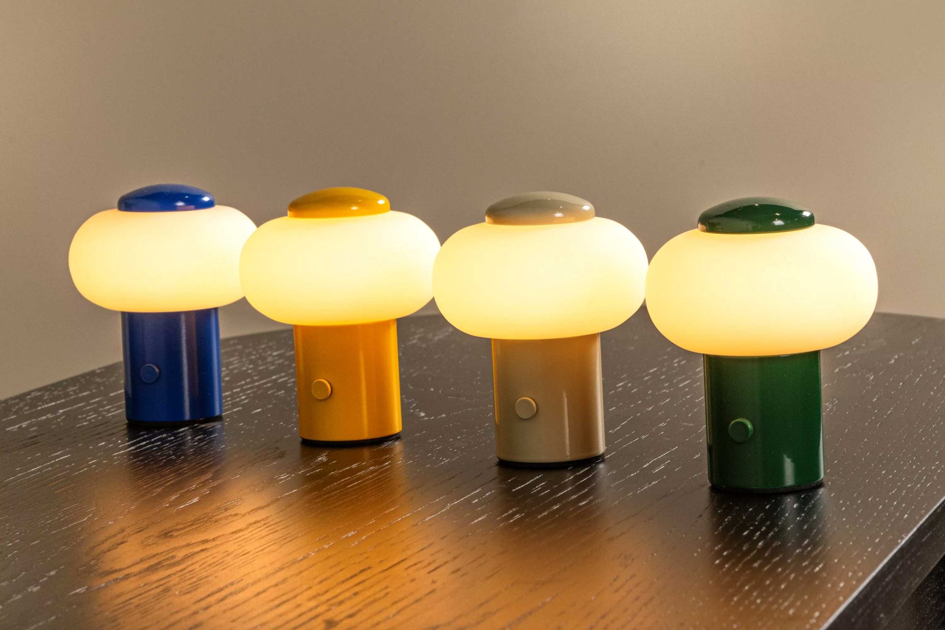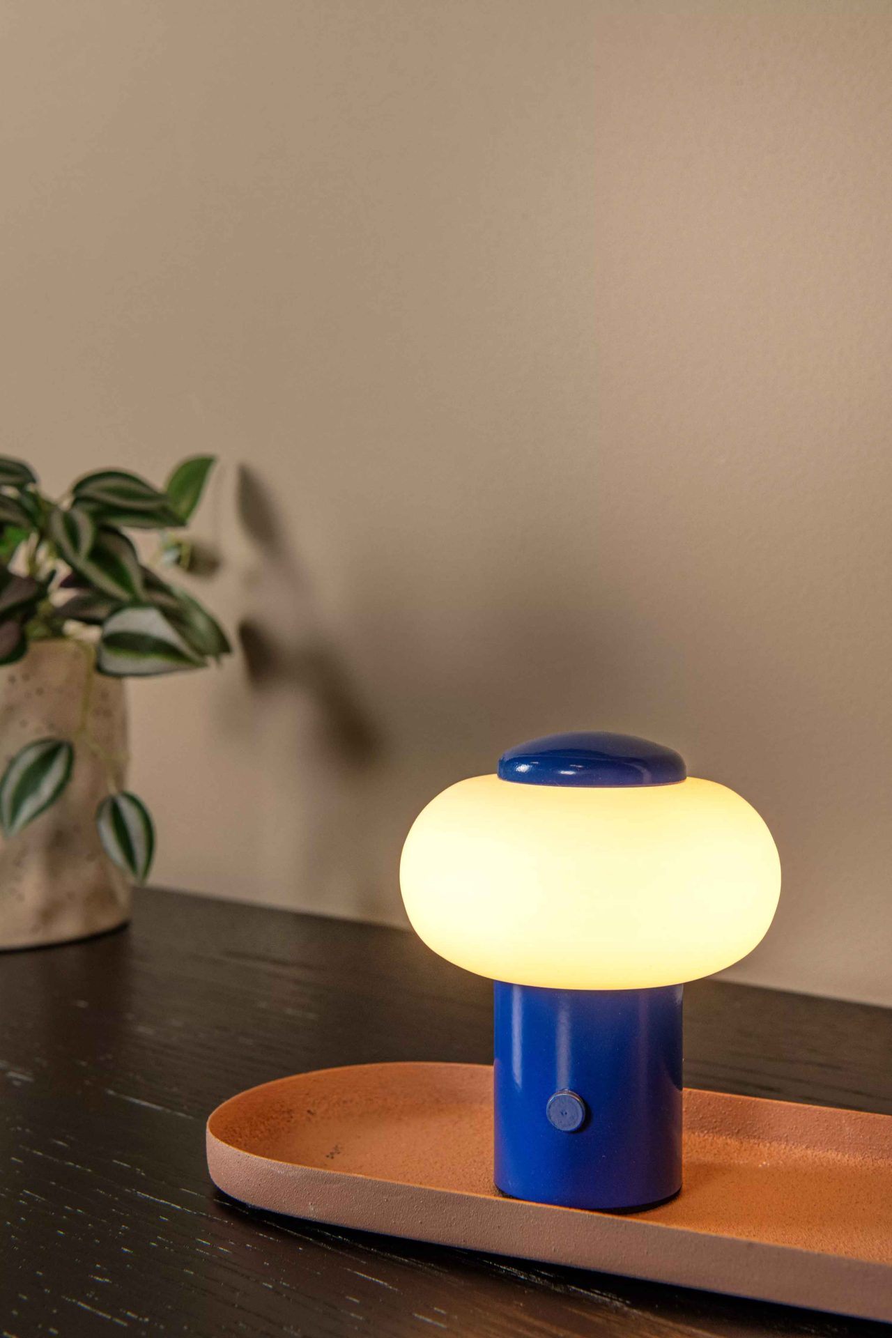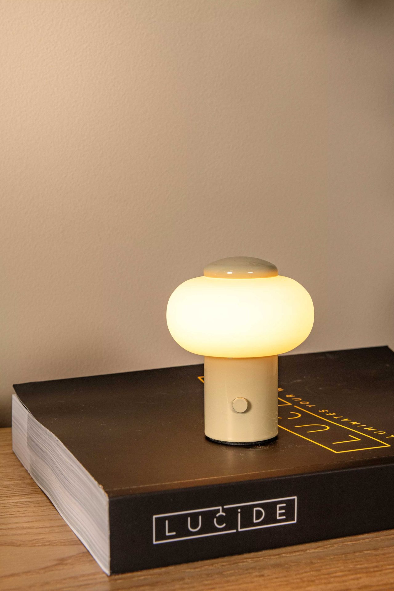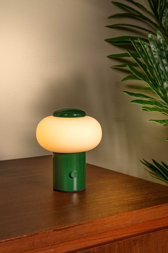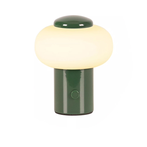 The built-in battery provides up to four hours of warm white light without the need for a power outlet. Made of sturdy iron with a glossy finish. With a height of 9.5 cm and a diameter of 8 cm, it fits perfectly on bedside tables, side tables, or as an accent lamp.
