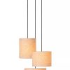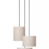 A striking composition of three contemporary cotton lampshades arranged at different heights: Maya will captivate your visitors with its playful character and diffused light. The adjustable cotton cable allows the pendant to be suspended at a length of up to 177 centimetres. With a diameter of 46 centimetres, Maya is the ideal centrepiece for a large hallway or for adding warmth to a cosy corner of your living room or bedroom. An external dimmer gives it the finishing touch. This contemporary pendant is compatible with LED light sources.