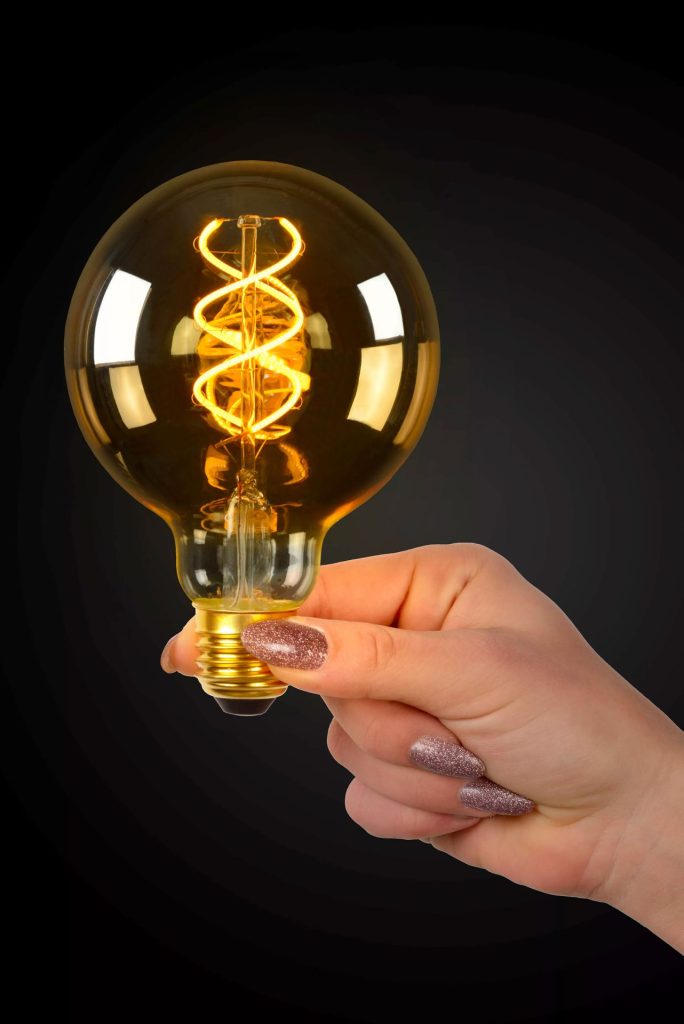 An LED bulb with the vintage look of an incandescent bulb or filament bulb. That is LED Bulb. The amber-coloured glass of the lamp and the visible filaments give the lighting a unique look.