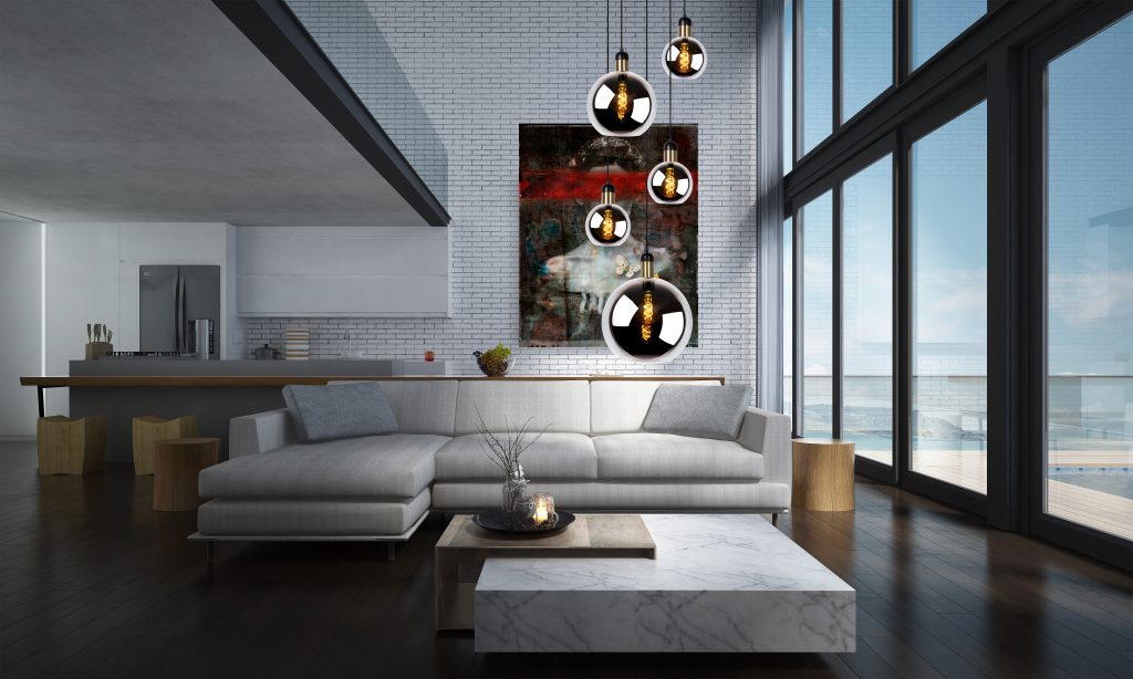 Juluis 5 light glass pendant in a Smoke Grey finish.